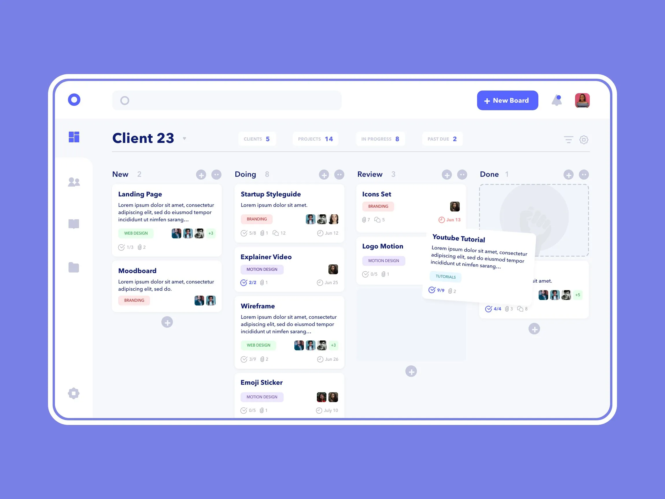 While we work on the task, manage your design board using Trello. List new ones, view active, and completed tasks with ease. Also, you can invite entire team to track the progress together.